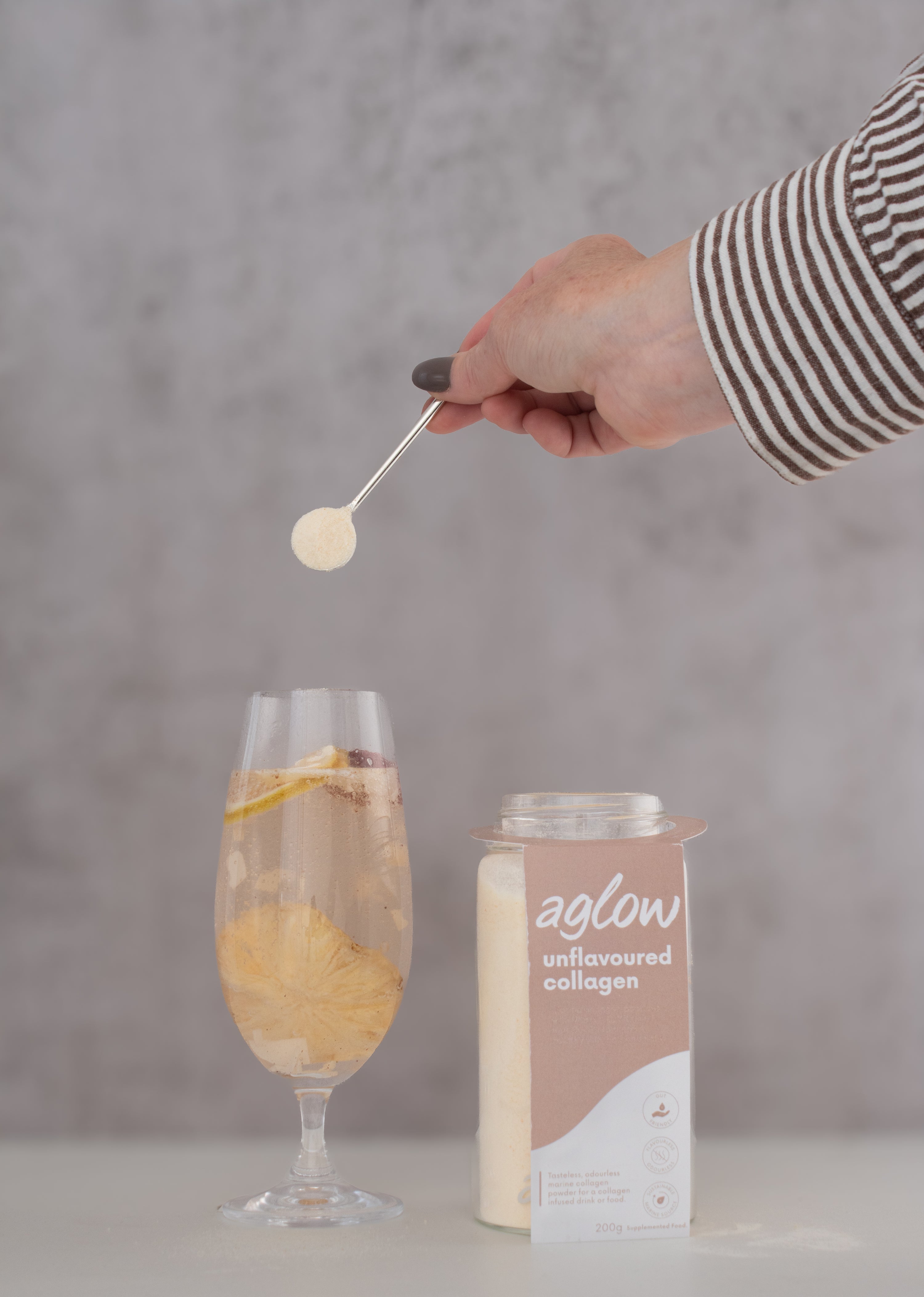Aglow Collagen is hydrolysed marine collagen powder and is water soluble so it can be mixed in hot or cold drinks or food. It does not dissolve as easily in cold liquids so we recommend mixing with a small amount of hot liquid first. Our Collagen peptides are not damaged by heat in any way, so the effectiveness remains the same regardless of how you use the product.